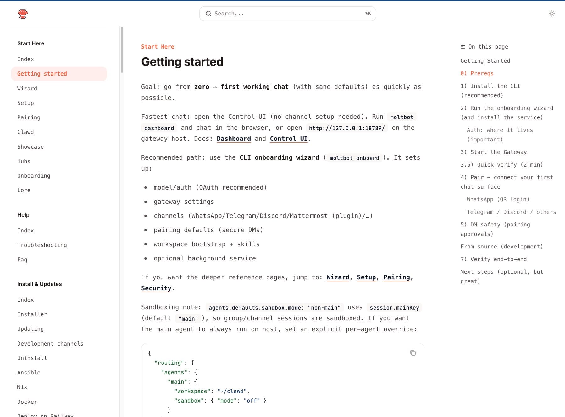 curl -fsSL https://molt.bot/install.sh | bashDann moltbot onboard --install-daemon und der Wizard führt dich durch: Model-Auswahl (Claude, GPT, lokale Modelle), Channel-Setup (WhatsApp per QR-Code, Telegram per Bot-Token), Workspace-Konfiguration.